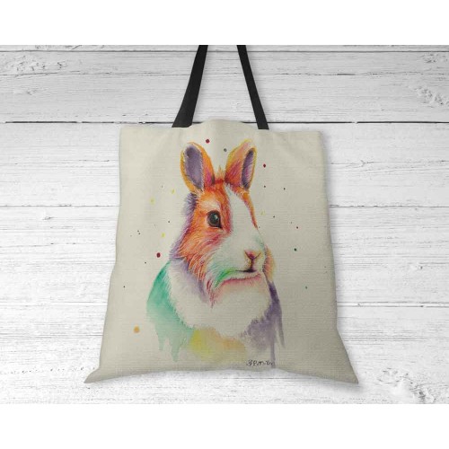 Our Short But Cute Rabbit tote bag features a beautiful reproduction of the artists' original work professionally printed onto a canvas effect shoulder handle tote bag.