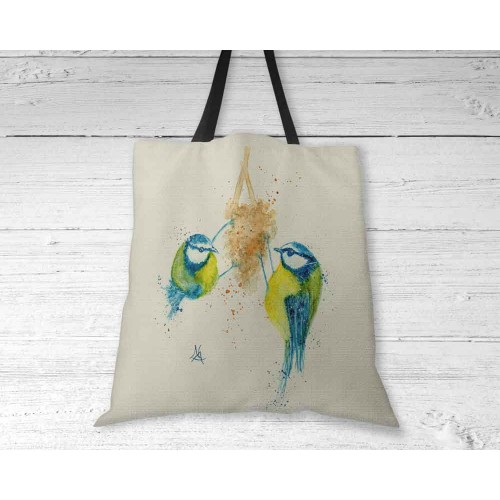 Our Eurasian Blue Tits tote bag features a beautiful reproduction of the artists' original work professionally printed onto a canvas effect shoulder handle tote bag.
