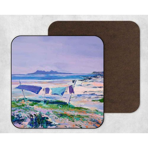 Our Laig Bay, Eigg coaster features a beautiful reproduction of the artists' original work professionally printed onto a set of four full size coasters.